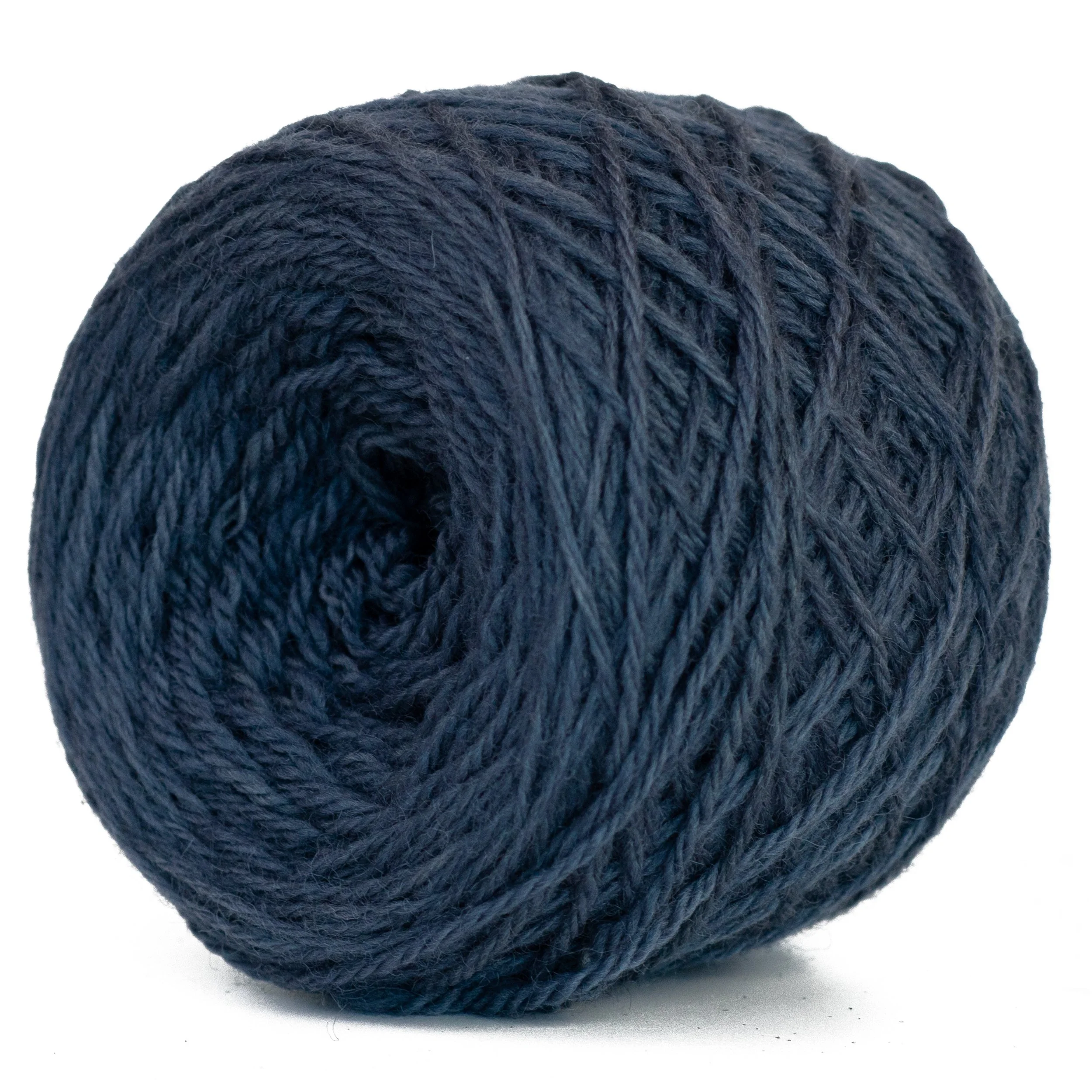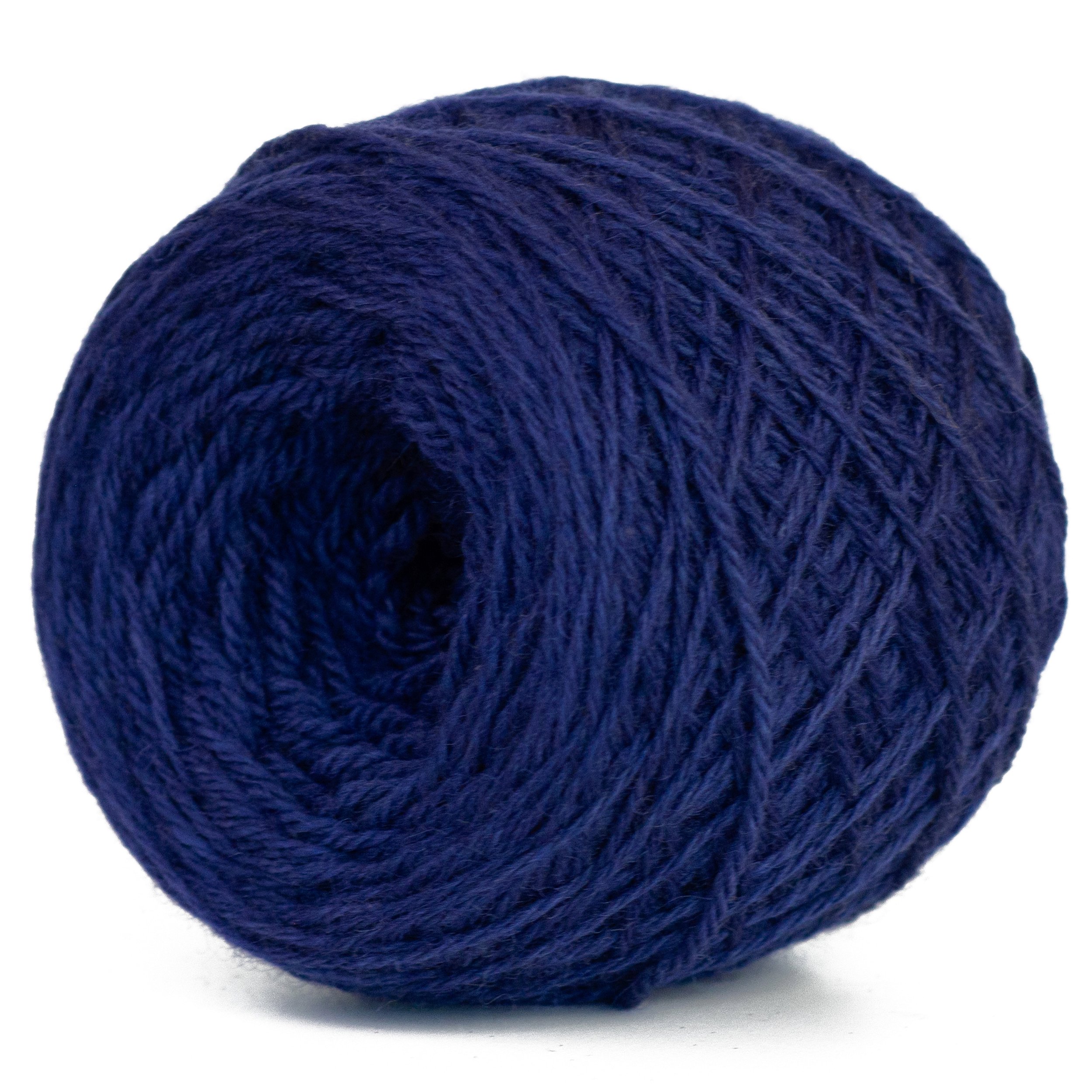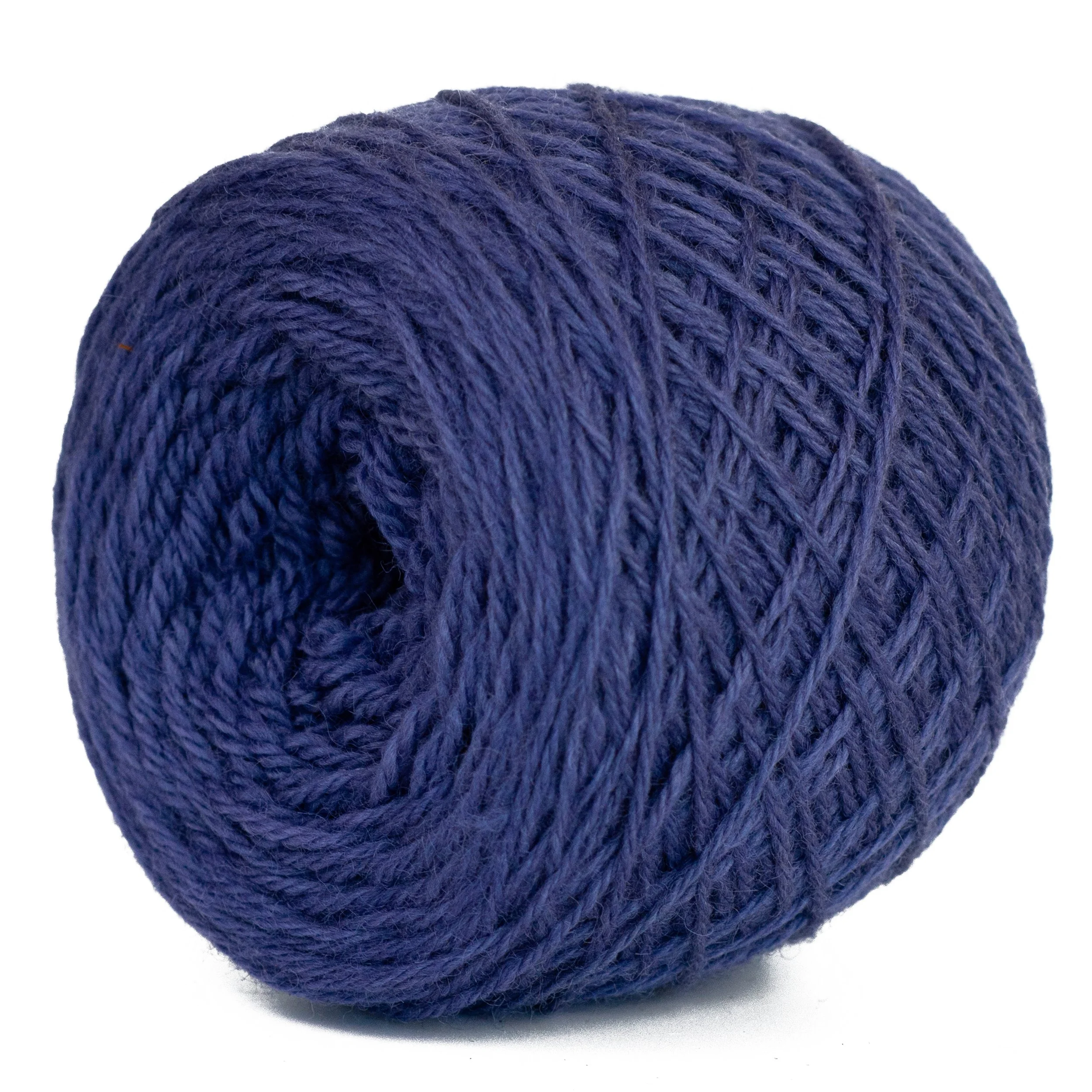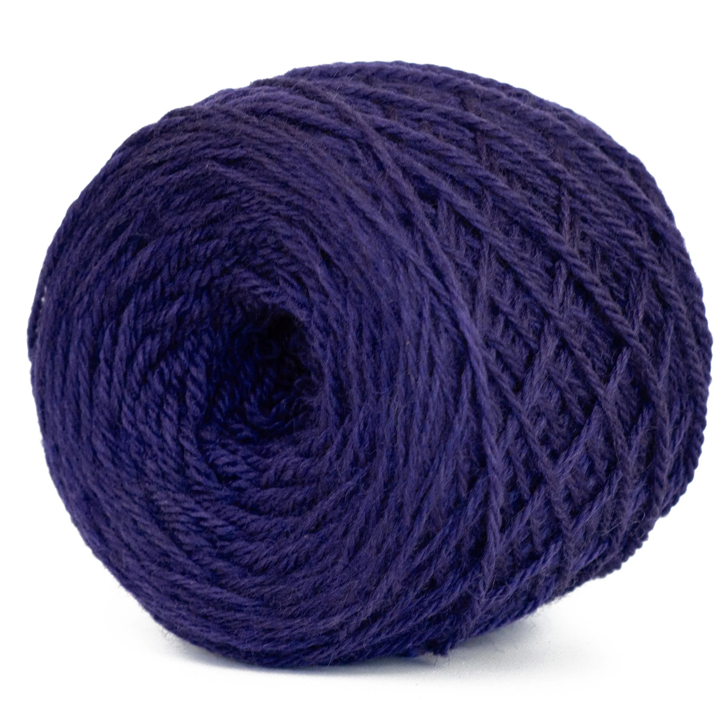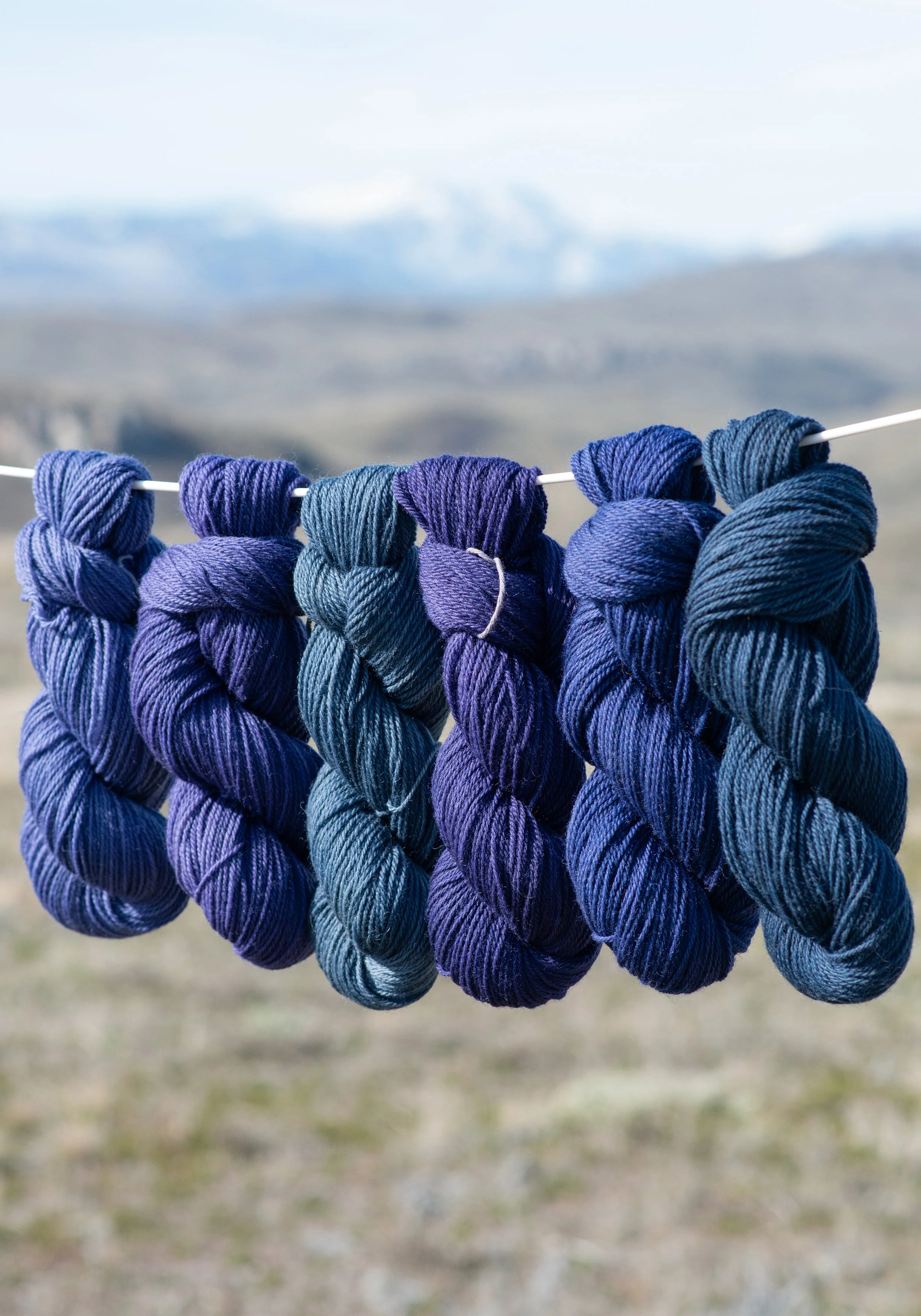 Logwood can also be used to dye a beautiful blue shade on woolen fibers — but only on woolen fibers (cotton, linen, and silk dyed the same way will come out purple). Chalk is used to raise the dye bath to a very slightly alkaline pH, which causes the normal purple hue to shift toward blue. Note that this blue is right on the edge of the purple spectrum: in sunlight you may look at it and say, “That’s definitely blue!” but in artificial light you might look at the same wool and think, “that’s a very blueish shade of purple.” If you need a blue without the purple undertone, use Campeche Blue Extract instead. This is an extremely beautiful color, especially when freshly dyed, but it has modest lightfastness and will fade if left in the sun.